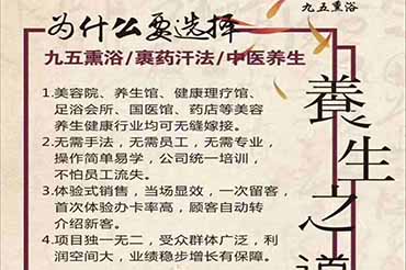 全国市场总负责人:孝君 (总监)全国统一咨询热线:18937671433 (同v)官网:www.jiuwuguoyao168.cn中医院、国医馆、养生馆、美容院2020最火项目---九五熏浴·裹药汗法,慢性病调理一次见效、疗程调理可康复!!“裹药”疗法是一项古老而神奇的